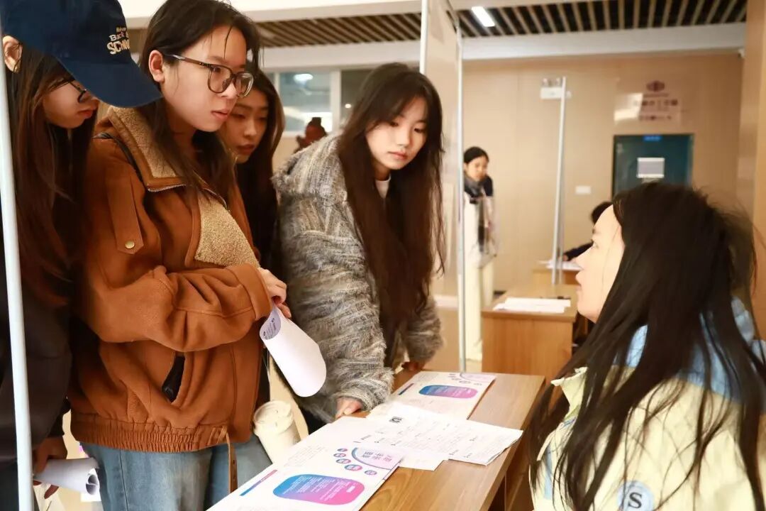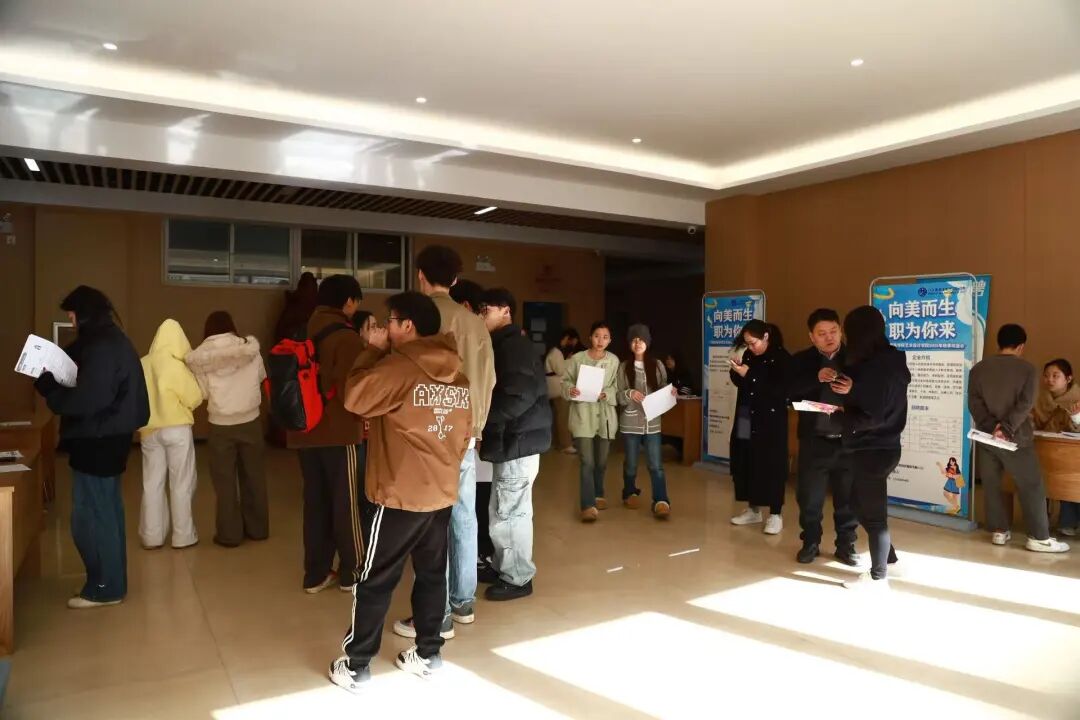 上午9:30,招聘会如期举行,近二十家省内知名企业到场招聘,提供了视觉传达、环境设计、数字媒体等多个专业、不同岗位。各企业通过布置展位、发放宣传册等形式,介绍了品牌情况与职位信息,并与同学们围绕职业发展、薪资待遇等话题进行了面对面交流。