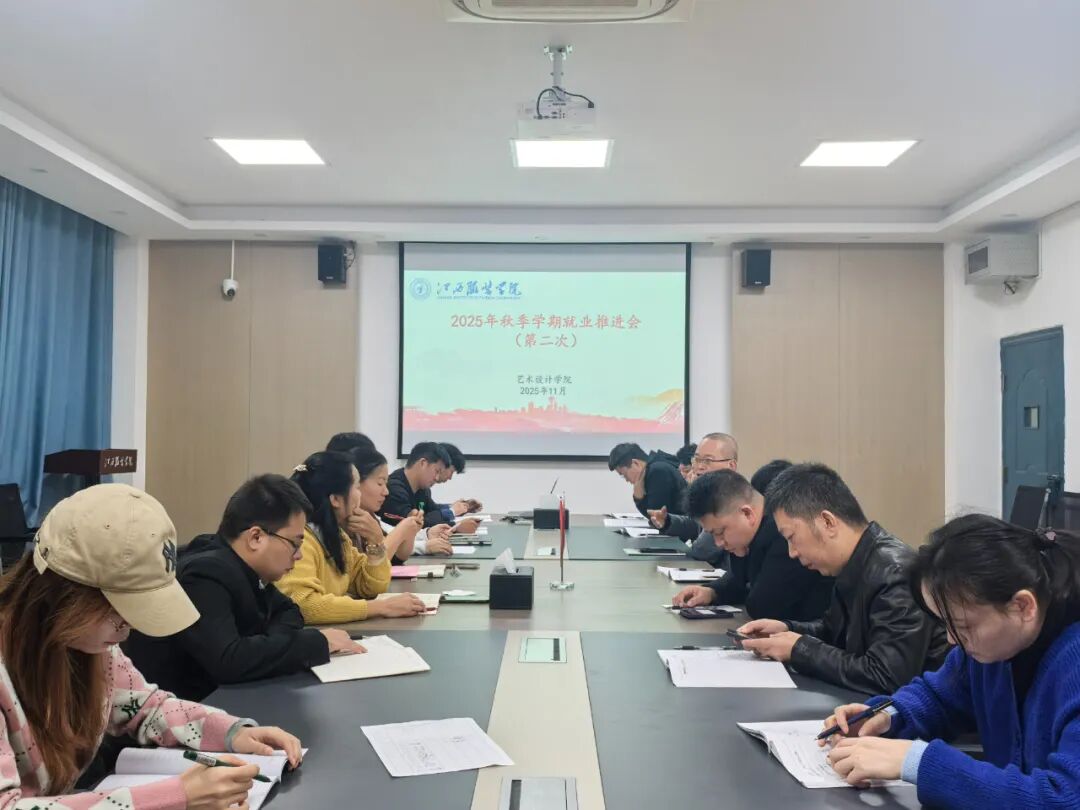 艺术设计学院讯(文:吕思嫚)为切实推进2026届毕业生就业工作,积极应对当前就业形势,全力促进毕业生实现更充分、更高质量就业。江西服装学院艺术设计学院于2025年11月21日上午10:00在艺术楼205会议室召开2026届秋季就业工作推进会,学院党委书记冯琼芳、党委副书记黄超群以及全体辅导员、班主任共同参会。
