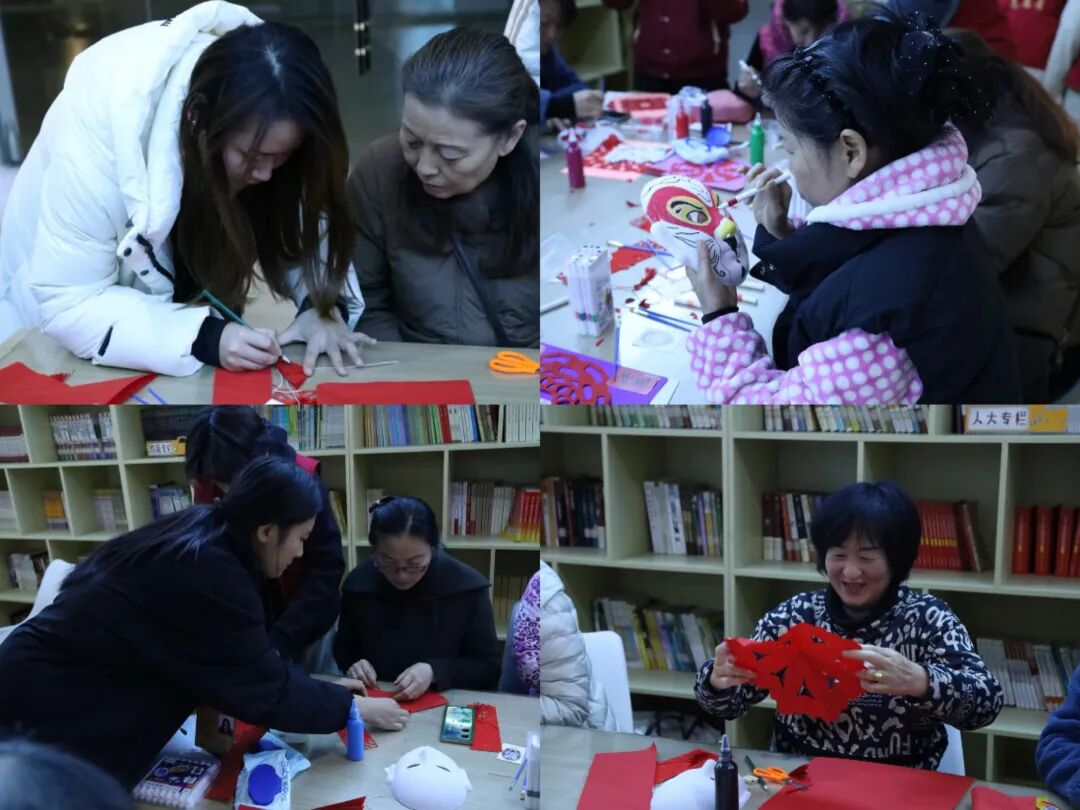 互动问答环节,大家踊跃抢答,答对者可以收获肥皂、剪纸卡片等礼品,现场气氛热烈。志愿者齐志红随后带领众人实践剪纸,还融入脸谱文化讲解,指导大家勾勒图案、填色创作。活动尾声,全体人员手持作品合影,定格下温馨十足的文化瞬间。