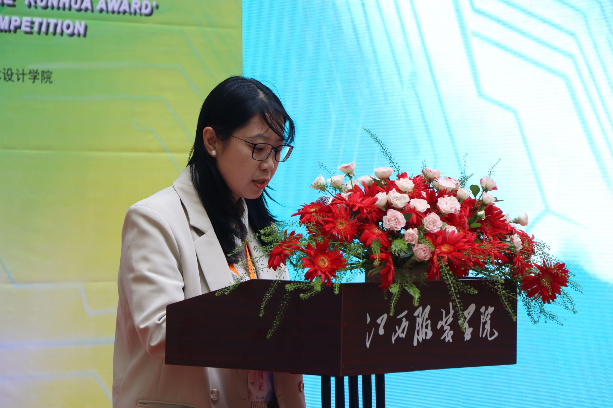 最后,刘孜杰副校长发表了热情洋溢的讲话。他高度肯定了本届“AI+数字化人台上的艺术”主题大赛,赞扬了268位参赛同学的创意激情和作品的专业水准。刘副校长强调,大赛促进了技术与艺术的深度融合,对提升学生跨学科创新与实践能力、培养适应数字经济的高素质应用型人才具有重要意义。他提出三点要求:夯实基础、构建新时代人才培养体系;融合创新、打造高效协同竞赛团队;放眼全球、构建多元开放交流平台,以赛促学、以赛促教,鼓励师生在未来创作中再创佳绩。