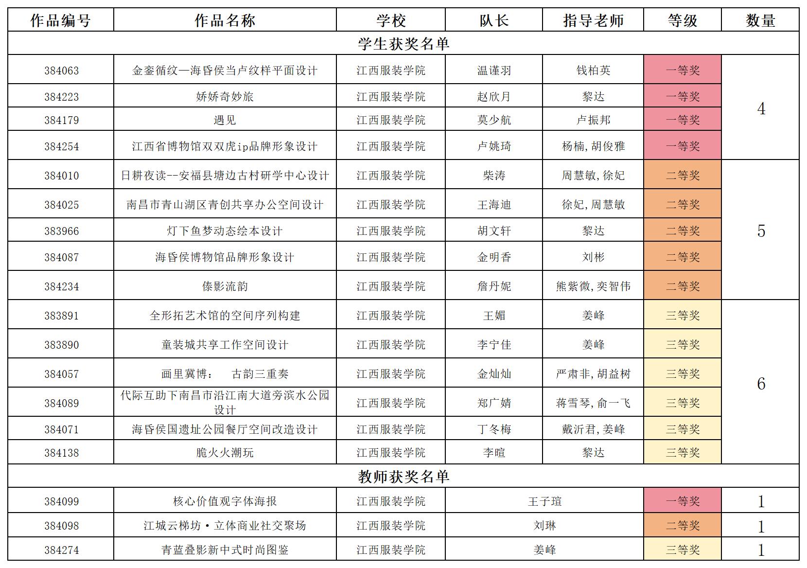 艺术设计学院共斩获18项荣誉,成绩斐然,具体获奖情况如下: