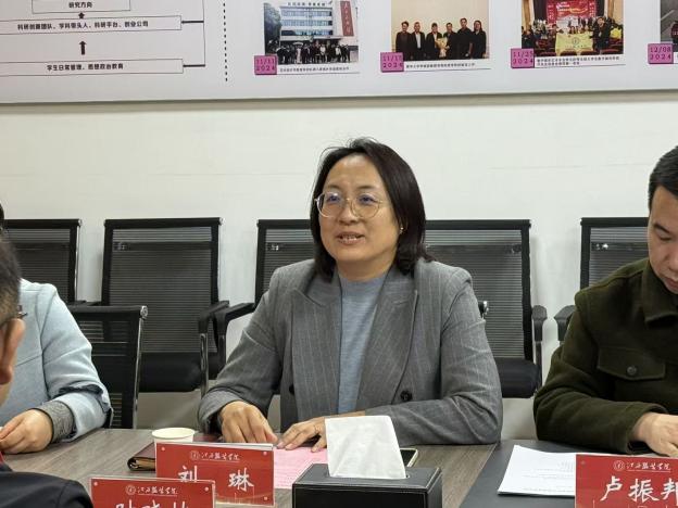 冯琼芳书记代表学院致欢迎辞,对时晓楠的到访表示热烈欢迎,强调此次座谈对推动两院经验互鉴的重要意义。随后,时晓楠院长发表来访致辞,表达了加强校际合作、深化艺术设计领域交流的殷切期望,并明确提出希望系统学习借鉴我院在审核评估工作中的成熟经验与有效做法。