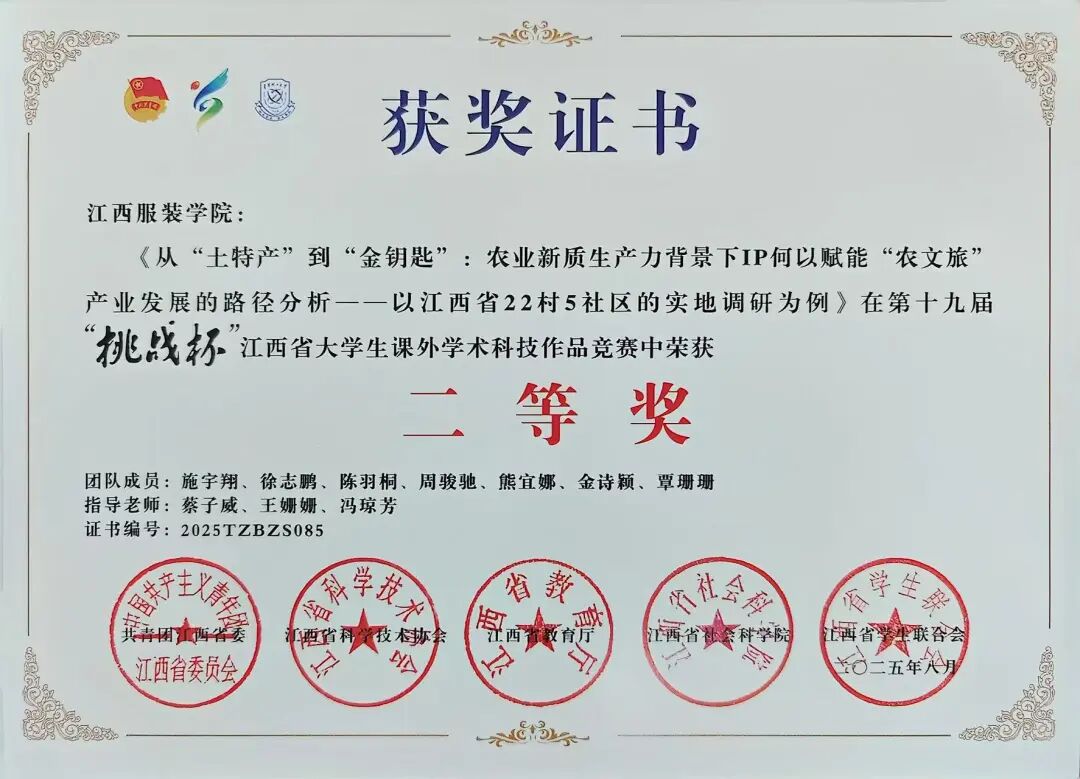 2025年,荣获江西省新文科创新实践大赛二等奖。