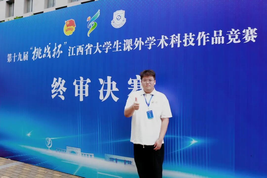 他凭借对专业的热爱与钻研,在专业领域不断深耕。他精心打造的“小青湖”特色IP形象,以其独特的创意和精湛的设计,先后在全国大学生广告艺术大赛、省级文创设计大赛等多项赛事中脱颖而出,斩获多个奖项。在备赛过程中,他反复打磨细节,从IP的形象设计到应用场景的拓展,都力求做到尽善尽美。他还积极与团队成员交流协作,在第十九届挑战杯江西省大学生课外学术科技作品竞赛中获二等奖,用实力为学校和学院争得了荣誉,也为自己的专业成长之路增添了亮丽的色彩。