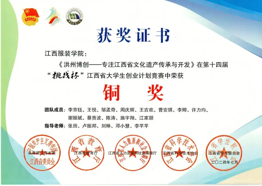 2023年,荣获第十四届“挑战杯”江西省大学生创业计划竞赛铜奖;