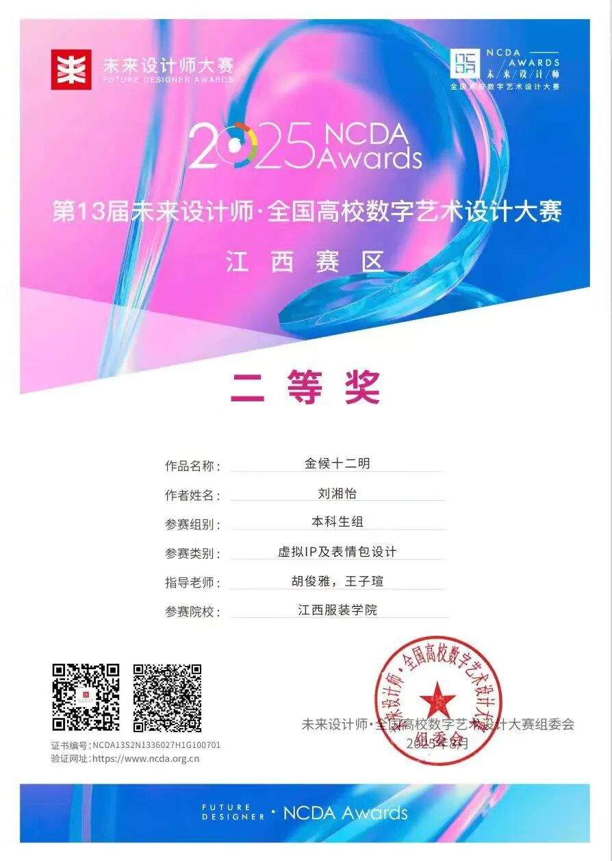 2025年,荣获“中国好创意全国数字艺术设计大赛”省级二等奖;