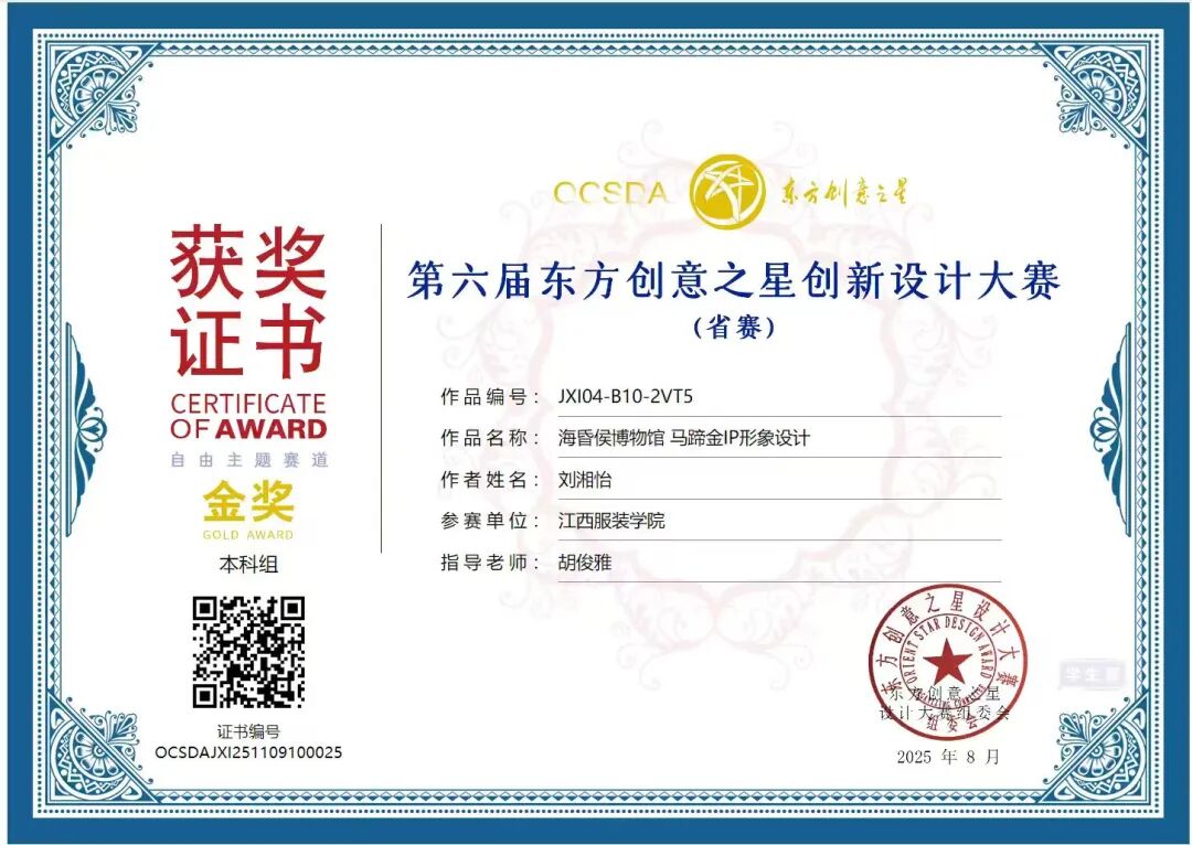 2025年,荣获第六届东方创意之星创新设计大赛金奖。