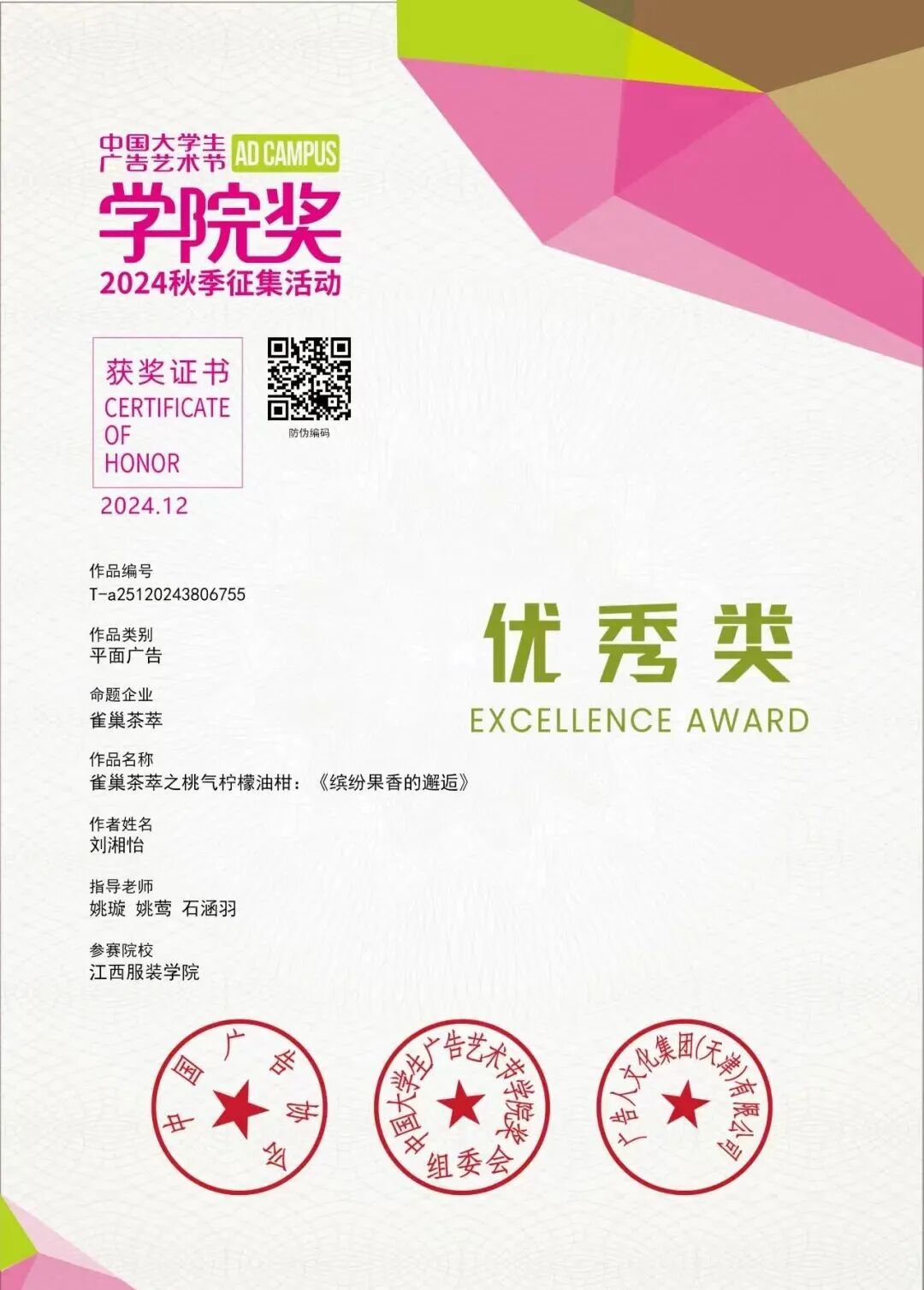 2024年,荣获“中国大学生广告艺术节”省级优秀奖;
