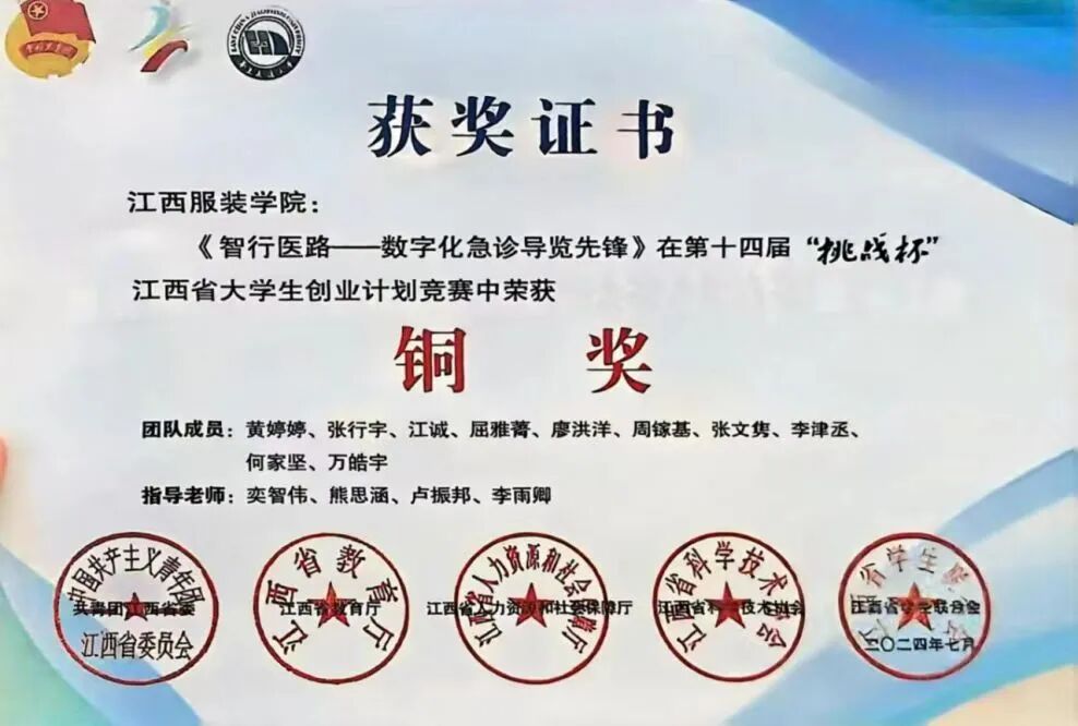 2024年,荣获“挑战杯”江西省大学生创业计划竞赛铜奖