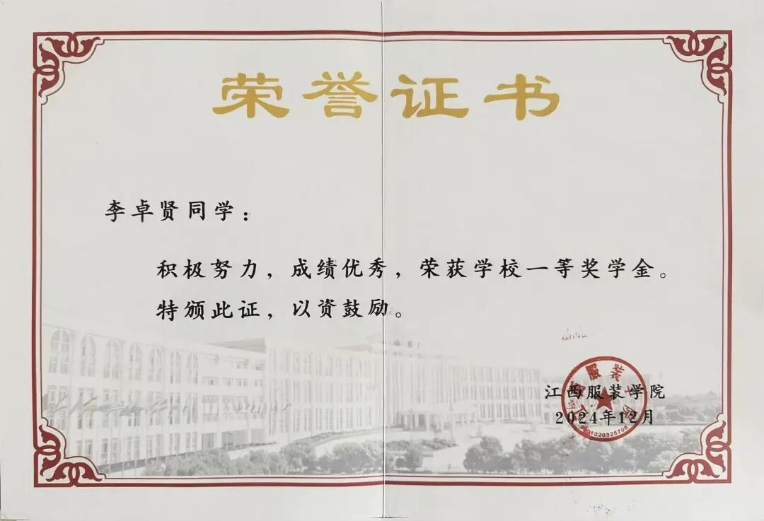 2024 年,荣获“学校一等奖”奖学金