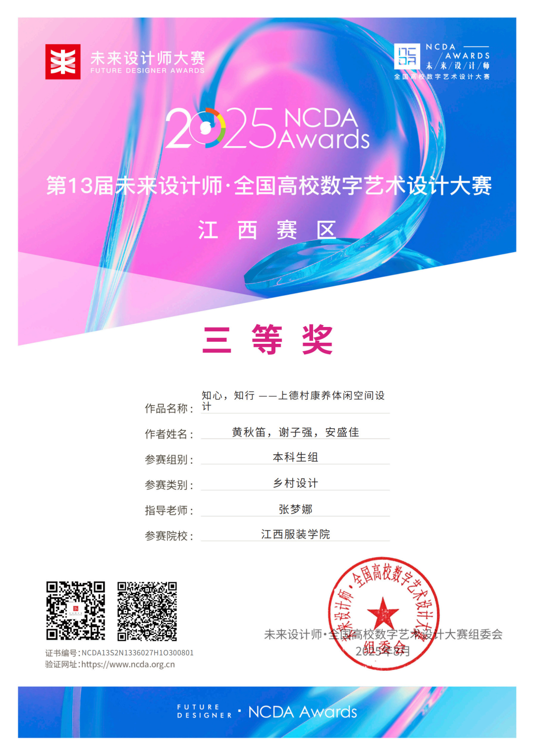 2025年,荣获省级“第十三届未来设计师”三等奖