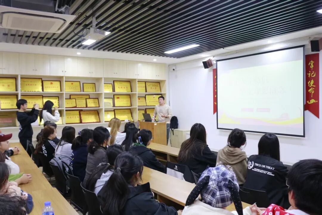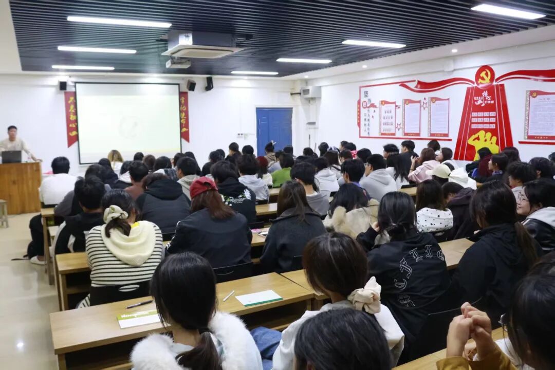 最后,温志强老师结合学校发展党员的实际工作情况,细致讲述了中国共产党发展党员工作的具体流程。从提交入党申请书、成为入党积极分子,到发展对象培养、预备党员考察,再到正式党员转正,让新生清晰了解入党的完整路径,为有意愿入党的同学提供了明确指引。