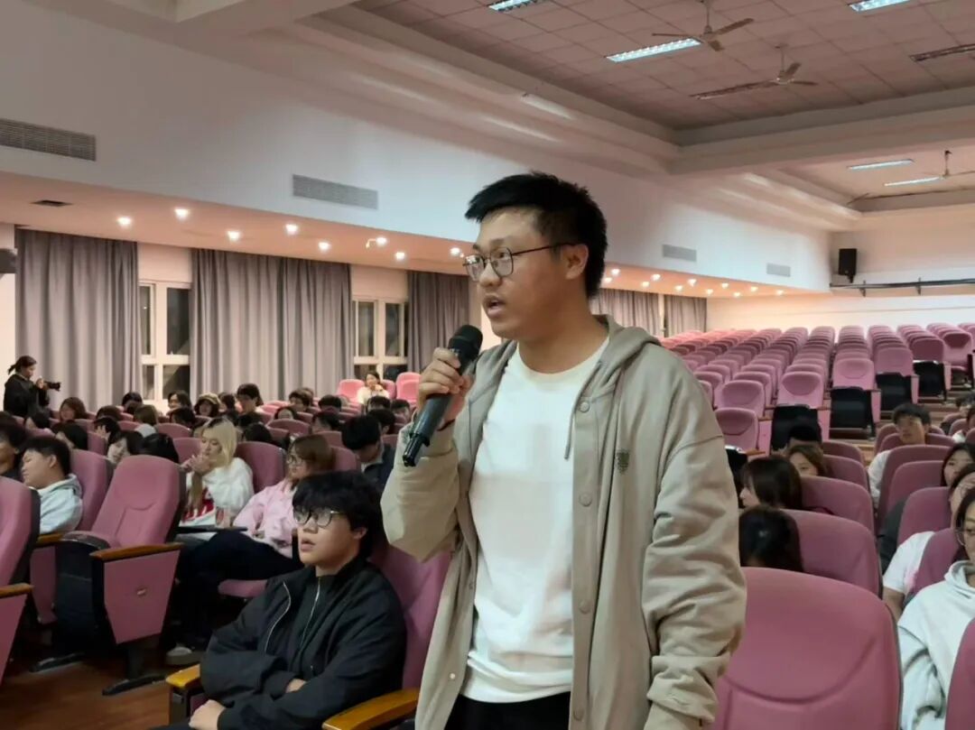 同时,她的分享也让同学们踊跃参与起来:有人提议多参与集体活动、以真诚交友,有人建议学管生活、想家时联系家人,还有人分享运动解压、睡前断网的小技巧,使整个现场充满了跃动的朝气。