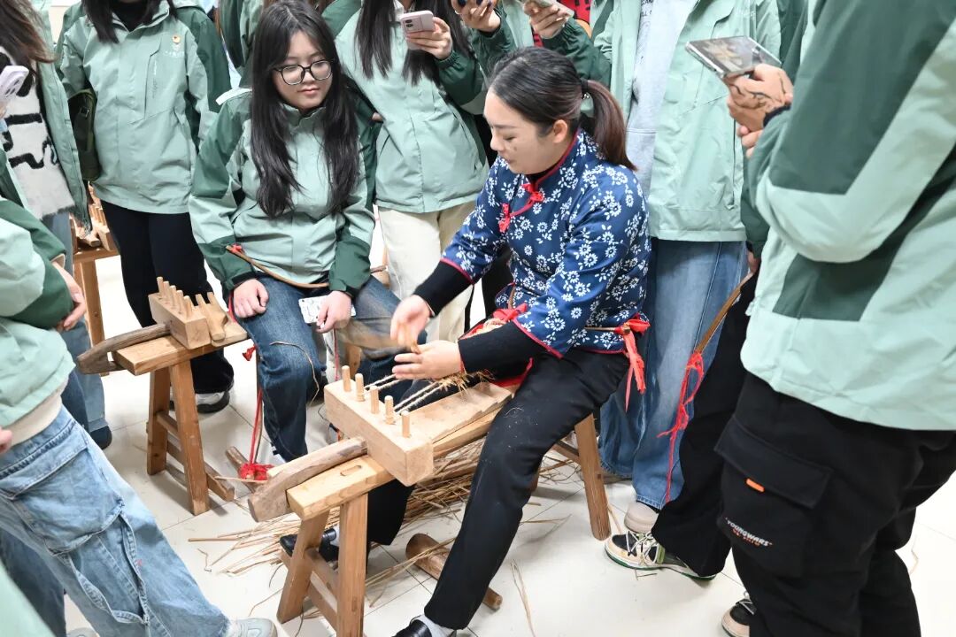 走进草鞋制作的体验课堂,老师傅们手把手传授编鞋技艺。搓草绳、绕鞋头、编鞋身,指尖翻飞间,粗糙的稻草逐渐成型,磨红的手掌让大家真切体会到革命先辈“脚上无鞋天下走”的艰辛与坚韧。一双双亲手编织的红军草鞋,不仅是匠心传承的珍贵见证,更承载着 “艰苦奋斗攻难关” 的井冈山精神,成为刻在每一位团学骨干心中的精神信物,时刻提醒着青年一代不忘来路、勇担使命。