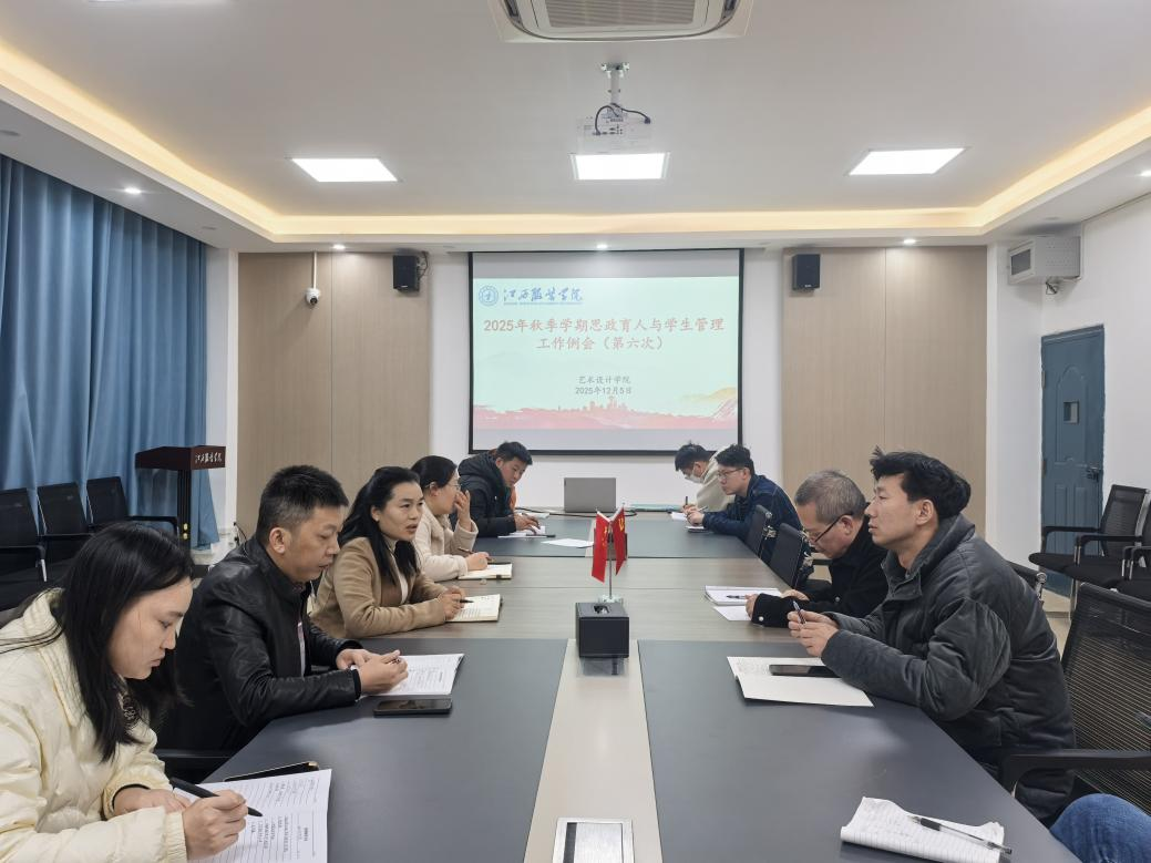 为进一步加强学院思政育人与学生管理工作,精准部署下一阶段重点任务,2025年12月5日14:00,艺术设计学院于艺术楼205会议室召开2025学年秋季学期思政育人与学生管理工作第六次例会。学院党委书记冯琼芳、党委副书记黄超群以及学院全体辅导员、班主任等参会。