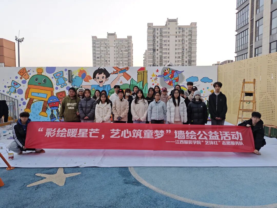 艺术设计学院讯(文:邹紫菡)为用艺术点亮社区景致,以专业所长践行志愿服务精神,艺术设计学院“艺抹红”志愿服务队于2025年12月27日前往南昌市青山湖区万象汇露台,开展以“墙绘暖星芒,艺心筑童梦”为主题的公益墙绘志愿服务活动。
