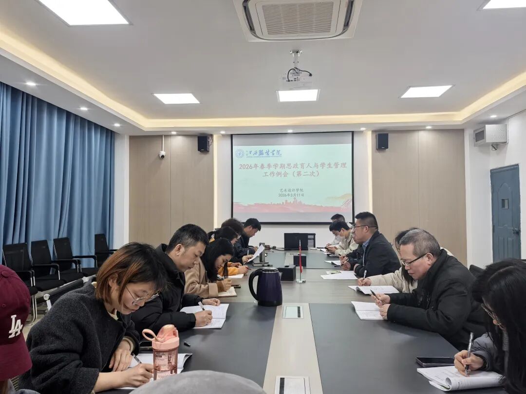 艺术设计学院讯(文:郭明宇)为深入落实立德树人根本任务,统筹推进春季学期学生思想政治教育与日常管理工作,压实育人责任、细化工作举措,艺术设计学院于3月11日上午9:30在艺术楼205会议室召开春季学期第二次思政育人与学生管理工作例会。学院党委书记冯琼芳、党委副书记黄超群、学工办副主任蔡子威及全体辅导员、班主任参加会议。