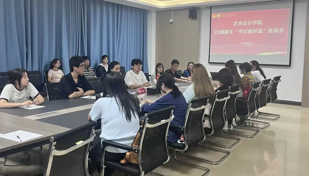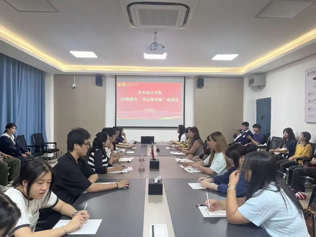 艺术设计学院讯(文:朱雨珊)为进一步解决学生们在校遇到的各种问题,艺术设计学院于2025年9月21日晚上20:00在艺术楼205教室组织开展25级新生“书记面对面”座谈会,参加此次会议的有艺术设计学院党委副书记黄超群、艺术设计学院分团委书记蔡子威及25级各班学生代表们。