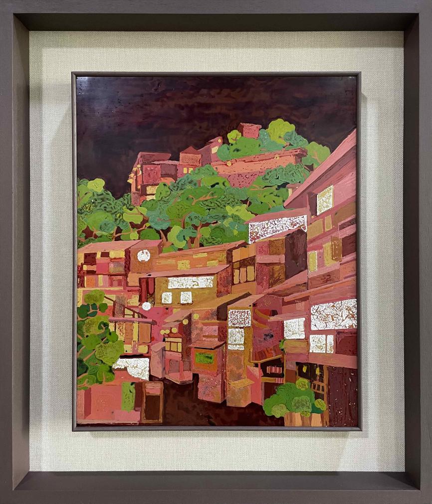 23级美术学学生 肖钰佳 漆画 《千古苗寨》 40x50cm