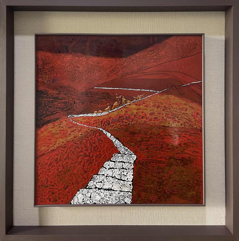 23级美术学学生 周焱溪 漆画 《热土》 50x50cm