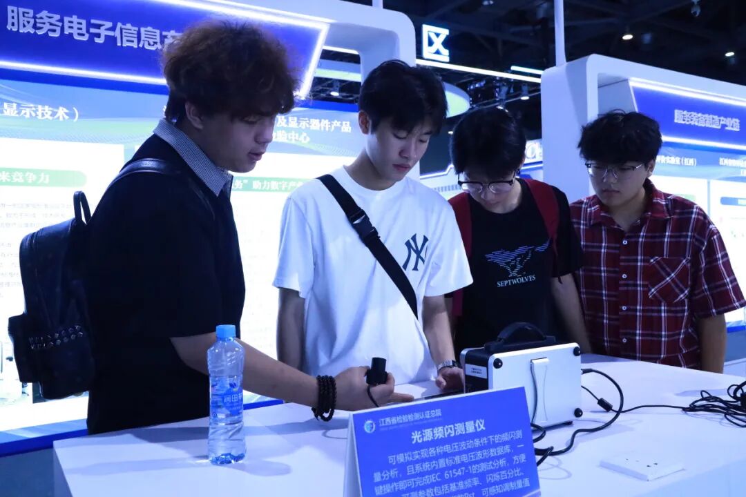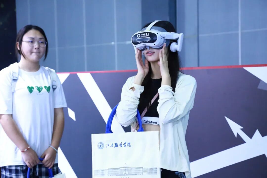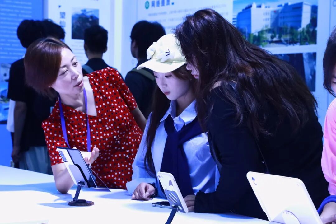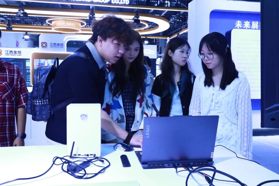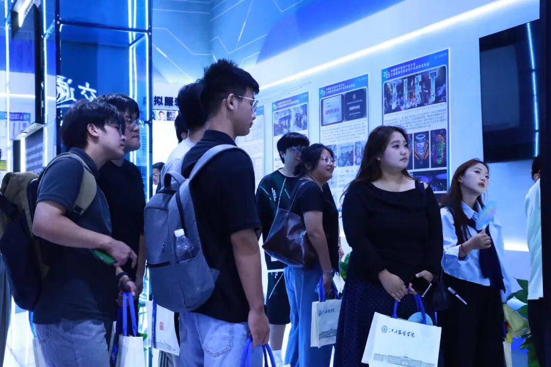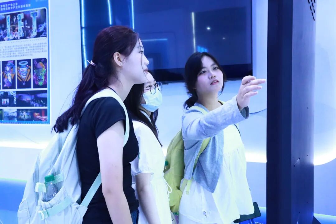 参观过程中,师生们在互动体验区热情参与体验项目。虚拟现实体验区里,同学们戴上设备沉浸式感受数字奇幻世界;智能交互装置前,不少同学通过肢体动作与虚拟场景互动,惊叹连连。老师们积极与讲解员探讨,同学们则专注倾听,忙着记录,眼神中满是对未来科技的憧憬与向往。