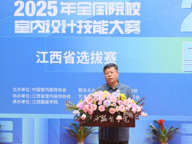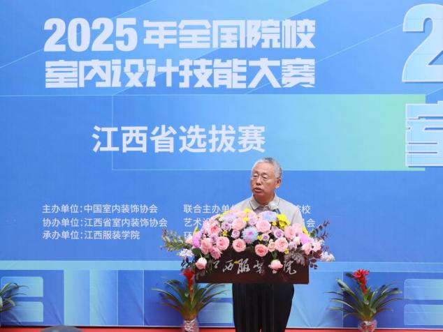 江西省室内装饰协会会长赵建平高度肯定了赛事的筹备工作,并向承办方江西服装学院表示诚挚感谢。他指出,室内设计行业应顺应时代发展,把“双碳”理念、人工智能工具及乡村美学系统有机融入课程体系,不仅要对接国际前沿趋势,更要扎根本土文化,推动行业创新与高质量发展。