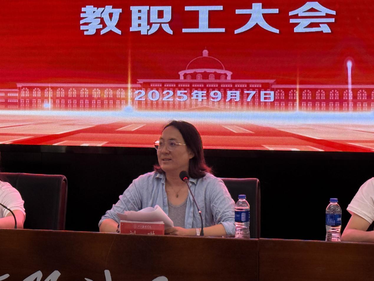 院长刘琳全面回顾了上学期工作成果,传达了学校中层干部会议精神,并围绕新学期工作重点作出部署。她指出,上半年学院在专业评估、专业建设、师资引育、科研创新等方面取得阶段性成效,但也需清醒认识到发展中的短板与不足。本学期学院将围绕“学习工作要点、领会工作精神”的主线,聚焦“危机、行动、使命”三大关键词,重点推进四项行动方案:一是实施“教育教学质量提升攻坚计划”,深化产教融合,优化实践教学环节,杜绝“坐着上课、不认真备课”等不良教学行为;二是启动“科研倍增行动”,鼓励教师申报省级一流课程、教改项目等教学科研项目,力争项目立项数稳步增长;三是开展“学生成长护航工程”,构建“三全育人”新格局,尤其抓实毕业生就业“生命线”,推动形成“全员参与、全程发力”的就业工作机制;四是夯实“治理效能提升年”,优化内部管理流程,增强师生获得感,为学院高质量发展筑牢保障。刘院长号召全体教职工以“开局即决战、起步即冲刺”的姿态迅速进入工作状态,确保各项任务落地见效。