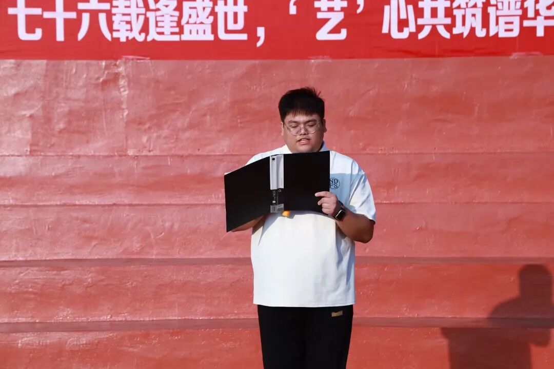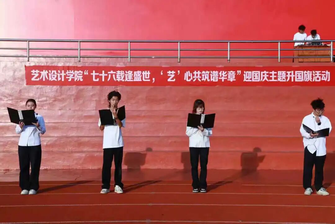 艺术设计学院23、24级学生代表以国庆主题诗朗诵《晨光里的中国》,用山河壮丽、人民团结以及“雄鸡”“巨龙”等意象,礼赞祖国山河与民族精神,这不仅传递了对祖国的深情,也激励学子以艺术为笔,续写家国情怀新篇章,为厚植爱国情怀、共筑中国梦贡献青春力量。