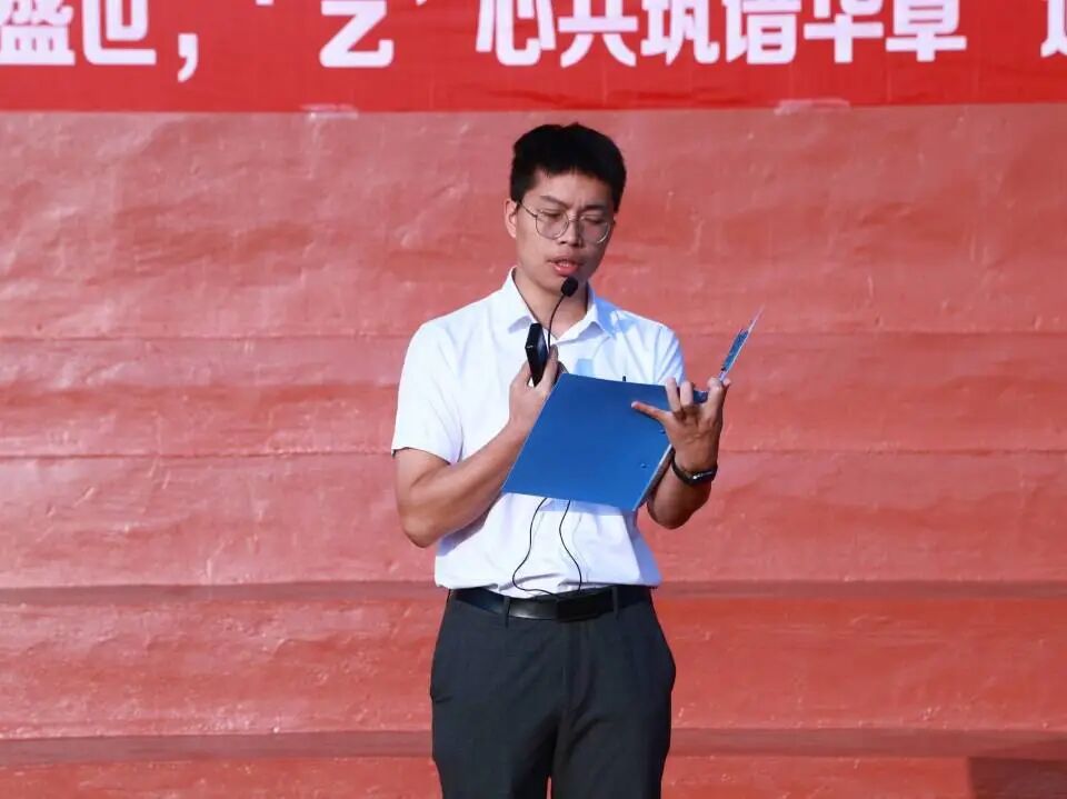 辅导员代表伍基梁结合工作经验,分享了“艺术设计源于生活、服务时代”的理念,并以故宫文创、乡村振兴设计等案例展示设计改变生活的力量。他鼓励学子以创意参与时代建设,并提出四点希望:一是立大志,将艺术追求融入国家发展与人民需求;二是明大德,坚守初心、锤炼品格;三是成大才,珍惜大学时光,深耕专业、强化实践;四是担大任,创新创意,用艺术解决实际问题。