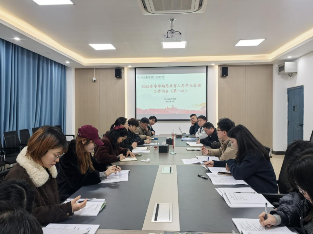 艺术设计学院讯(文:马颖)为全面落实立德树人根本任务,扎实做好春季学期开学各项工作,切实提升思政育人实效与学生管理服务水平,艺术设计学院于2026年3月1日下午15:00在艺术楼205会议室召开了2026年春季学期第一次思政育人与学生管理工作例会。学院党委书记冯琼芳、党委副书记黄超群、学工办副主任蔡子威及全体辅导员、班主任参会。