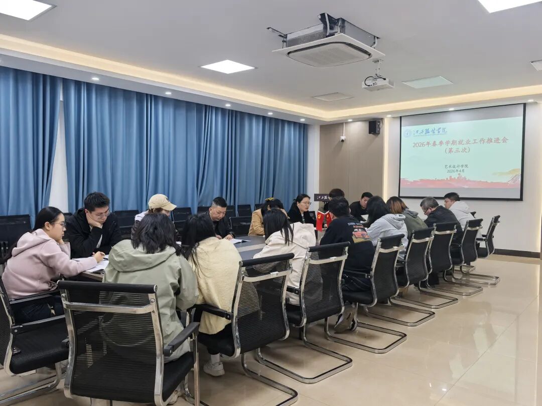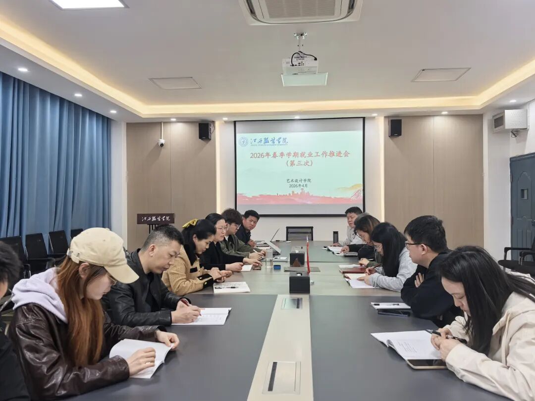 艺术设计学院讯(文:李铭杰)为深入贯彻落实党中央、国务院关于高校毕业生就业工作的决策部署,牢牢把握春季学期就业工作关键节点,压实就业工作责任,破解就业推进难点,全力推动学院毕业生就业工作提质增效,艺术设计学院于4月2日15:00在205会议室召开了2026年春季学期第三次就业工作推进会,学院党委书记冯琼芳、党委副书记黄超群及全体辅导员、班主任参会。